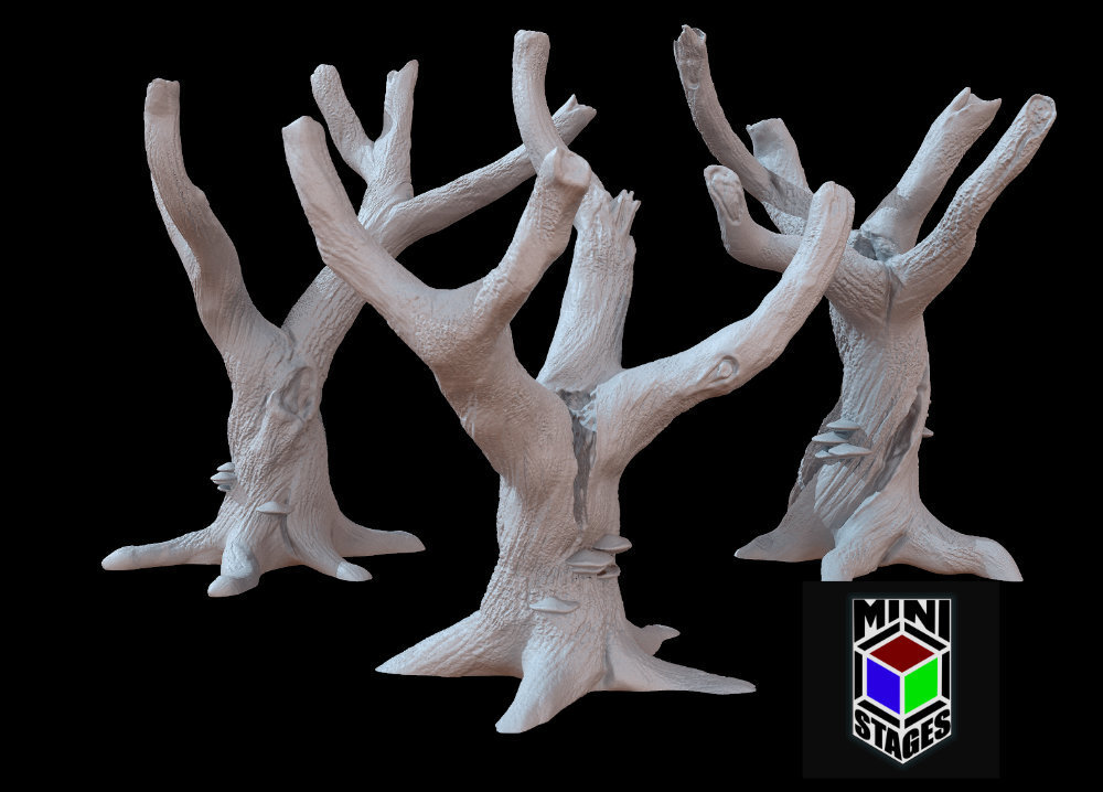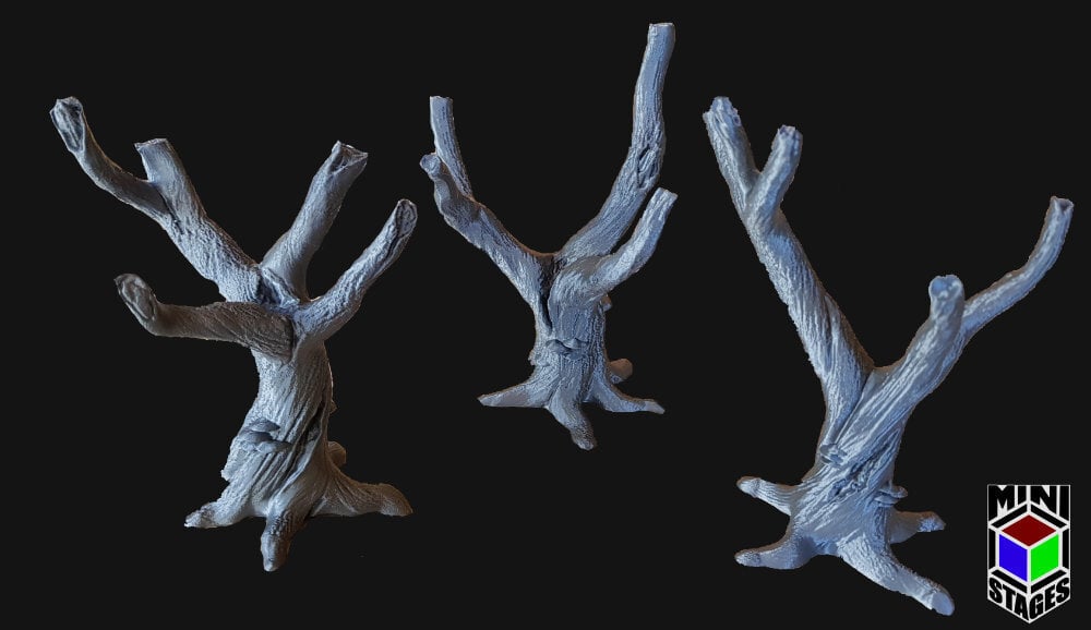 Three different dead tree models for 3D printing. The files come as STL and print supportless.